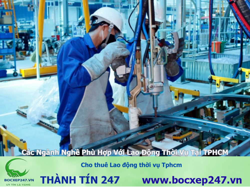 Dịch vụ cho thuê lao động thời vụ TPHCM của Thành Tín 247 phù hợp với nhiều ngành nghề khác nhau, bao gồm:
